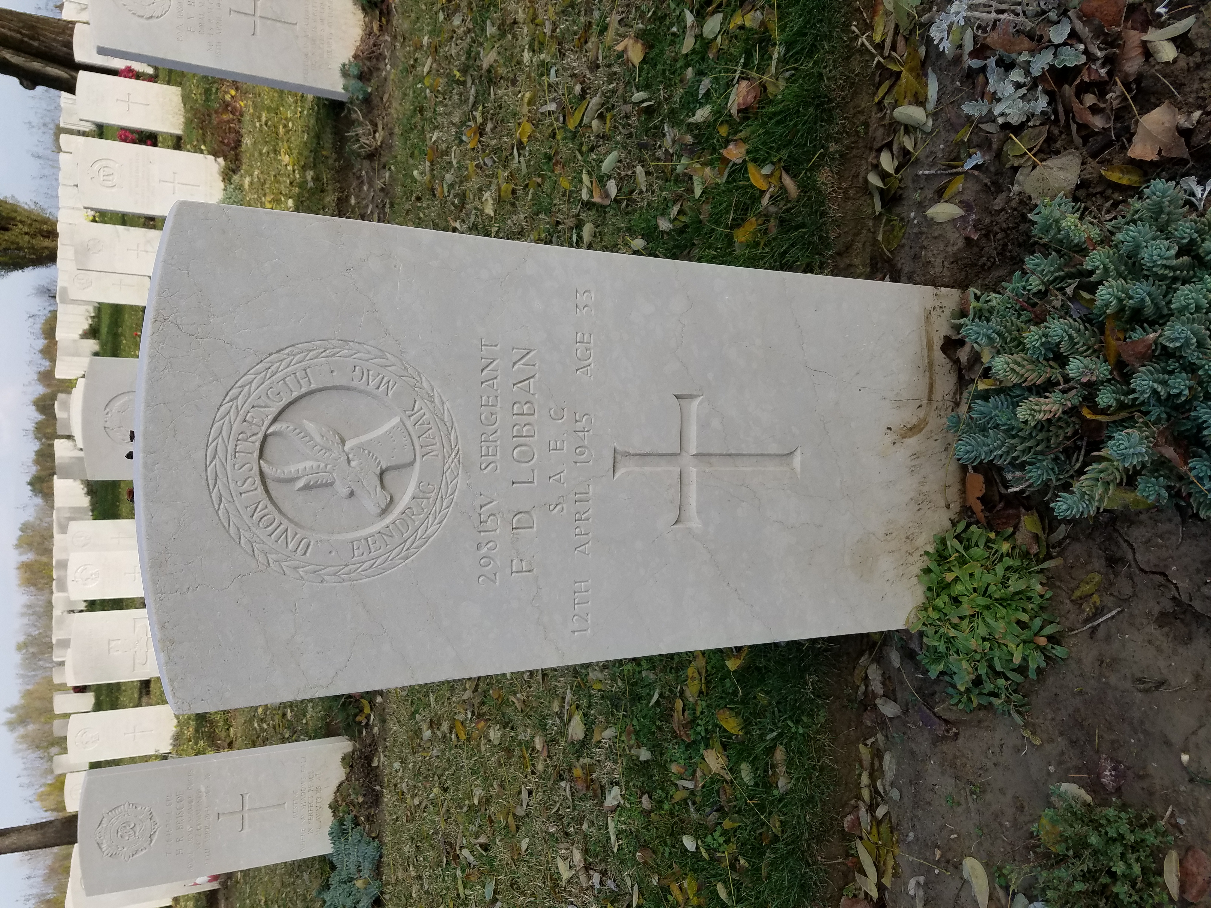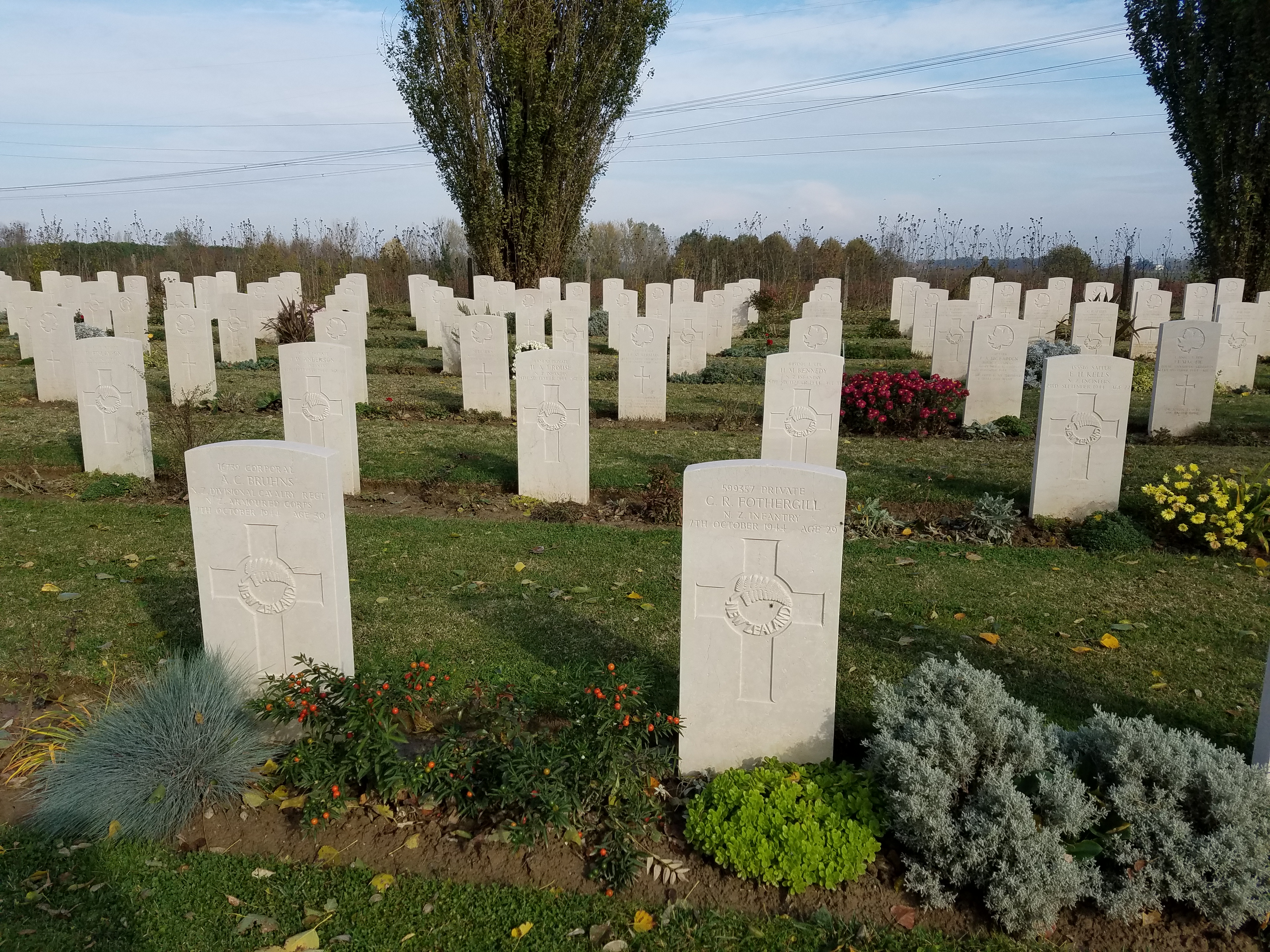 Ravenna War Cemetery (near Piangipani, Ravenna Province, Emilia-Romagna Region, Italy) - WWI and WWII Commonwealth - 11 South Africans, 8 Australians, 33 total burials from WWI; 33 Jewish Brigade, United Kingdom, Indians, Canadians, New Zealanders, 955 total burials from WWII, 63 Unknown.